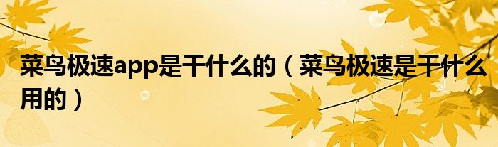 导读 大家好,小跳为你解答以上问题。菜鸟极速app是干什么的,菜鸟极速是干什么用的这个问题很多人还不知道,现在让我们一起来看看吧!