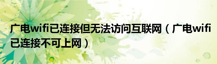 导读 大家好,小跳为你解答以上问题。广电wifi已连接但无法访问互联网,广电wifi已连接不可上网这个问题很多人还不知道,现在让我们一起来看看吧