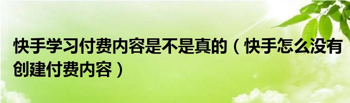 快手学习付费内容是不是真的(快手怎么没有创建付费内容)