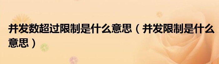 导读 大家好,小跳为你解答以上问题。并发数超过限制是什么意思,并发限制是什么意思这个问题很多人还不知道,现在让我们一起来看看吧!