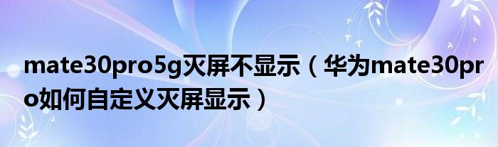 mate30pro5g灭屏不显示(华为mate30pro如何自定义灭屏显示)