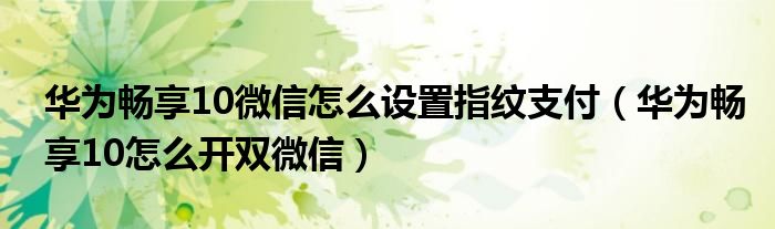 导读 大家好,小跳为你解答以上问题。华为畅享10微信怎么设置指纹支付,华为畅享10怎么开双微信这个问题很多人还不知道,现在让我们一起来看看吧