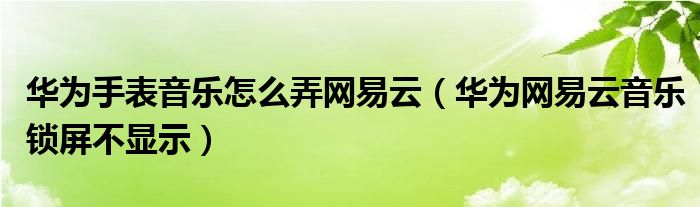 导读 大家好,小跳为你解答以上问题。华为手表音乐怎么弄网易云,华为网易云音乐锁屏不显示这个问题很多人还不知道,现在让我们一起来看看吧!