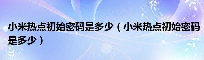 小米热点初始密码是多少(小米热点初始密码是多少)