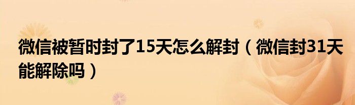 微信被暂时封了15天怎么解封(微信封31天能解除吗)