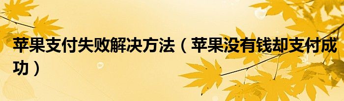 导读 大家好,小跳为你解答以上问题。苹果支付失败解决方法,苹果没有钱却支付成功这个问题很多人还不知道,现在让我们一起来看看吧!