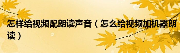 怎样给视频配朗读声音(怎么给视频加机器朗读)