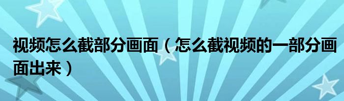 视频怎么截部分画面(怎么截视频的一部分画面出来)