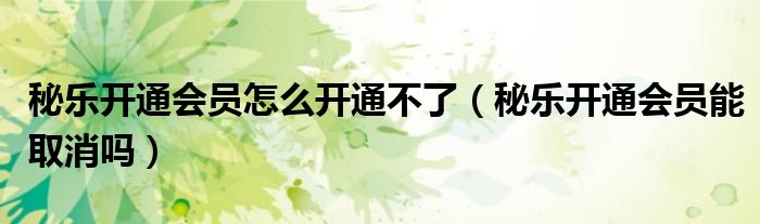 导读 大家好,小跳为你解答以上问题。秘乐开通会员怎么开通不了,秘乐开通会员能取消吗这个问题很多人还不知道,现在让我们一起来看看吧!