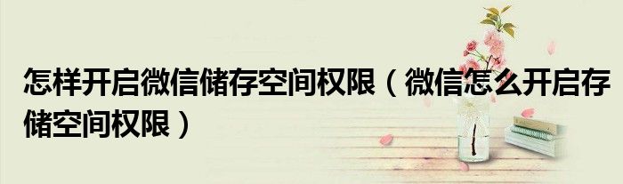 怎样开启微信储存空间权限(微信怎么开启存储空间权限)