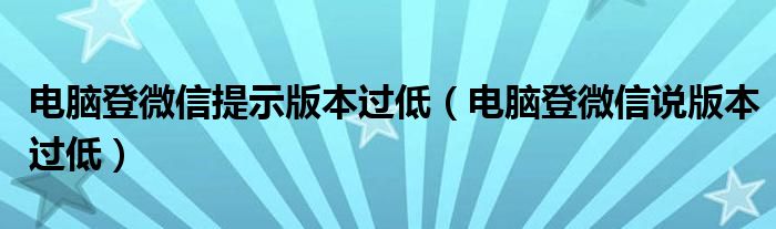 电脑登微信提示版本过低(电脑登微信说版本过低)