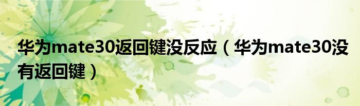 导读 大家好,小跳为你解答以上问题。华为mate30返回键没反应,华为mate30没有返回键这个问题很多人还不知道,现在让我们一起来看看吧!