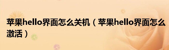 苹果hello界面怎么关机(苹果hello界面怎么激活)