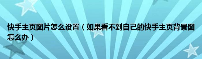 导读 大家好,小跳为你解答以上问题。快手主页图片怎么设置,如果看不到自己的快手主页背景图怎么办这个问题很多人还不知道,现在让我们一起来看