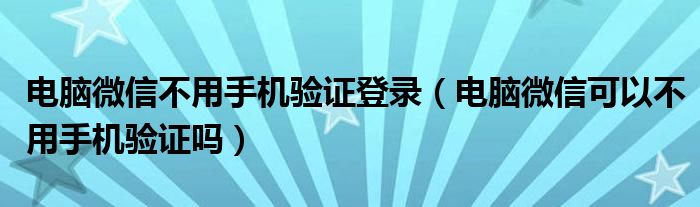 电脑微信不用手机验证登录(电脑微信可以不用手机验证吗)
