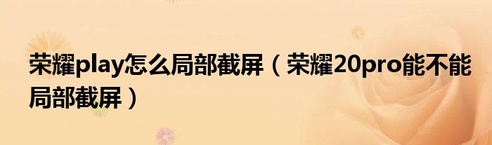 导读 大家好,小跳为你解答以上问题。荣耀play怎么局部截屏,荣耀20pro能不能局部截屏这个问题很多人还不知道,现在让我们一起来看看吧!