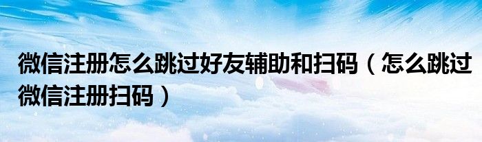 微信注册怎么跳过好友辅助和扫码(怎么跳过微信注册扫码)