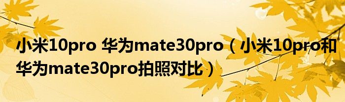 导读 大家好,小跳为你解答以上问题。小米10pro 华为mate30pro,小米10pro和华为mate30pro拍照对比这个问题很多人还不知道,现在让我们一起来看