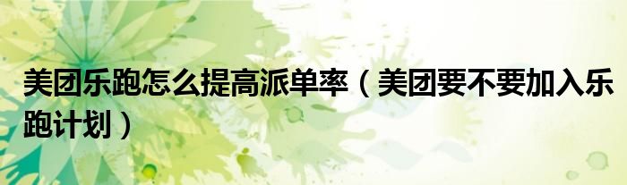 导读 大家好,小跳为你解答以上问题。美团乐跑怎么提高派单率,美团要不要加入乐跑计划这个问题很多人还不知道,现在让我们一起来看看吧!