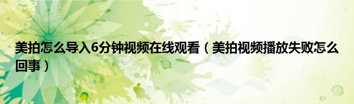 美拍怎么导入6分钟视频在线观看(美拍视频播放失败怎么回事)