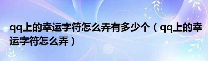 qq上的幸运字符怎么弄有多少个(qq上的幸运字符怎么弄)