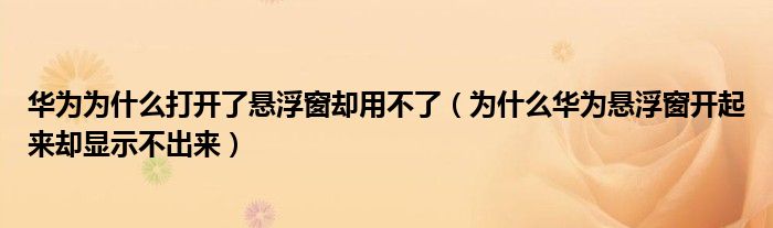 华为为什么打开了悬浮窗却用不了(为什么华为悬浮窗开起来却显示不出来)