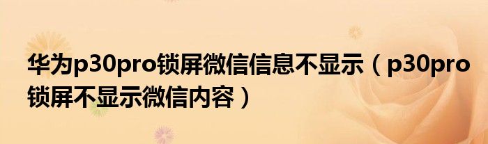 华为p30pro锁屏微信信息不显示(p30pro锁屏不显示微信内容)