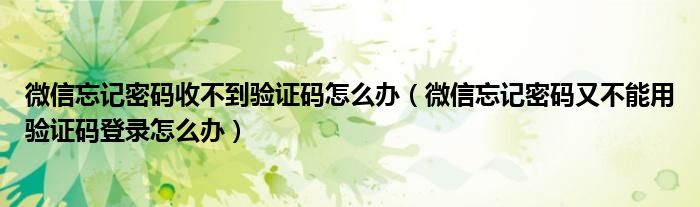 微信忘记密码收不到验证码怎么办(微信忘记密码又不能用验证码登录怎么办)