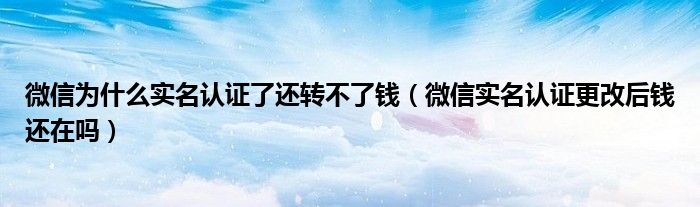 导读 大家好,小跳为你解答以上问题。微信为什么实名认证了还转不了钱,微信实名认证更改后钱还在吗这个问题很多人还不知道,现在让我们一起来看