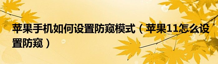 苹果手机如何设置防窥模式(苹果11怎么设置防窥)