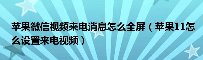 苹果微信视频来电消息怎么全屏(苹果11怎么设置来电视频)