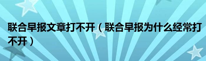 导读 大家好,小跳为你解答以上问题。联合早报文章打不开,联合早报为什么经常打不开这个问题很多人还不知道,现在让我们一起来看看吧!