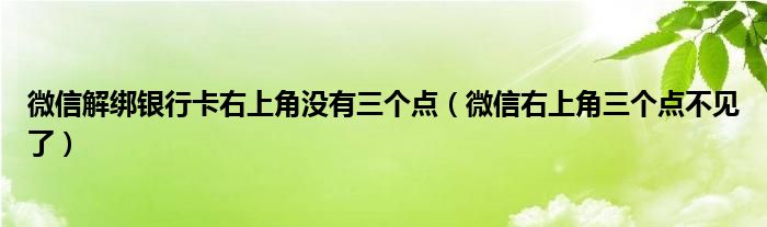 微信解绑银行卡右上角没有三个点(微信右上角三个点不见了)