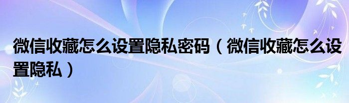 微信收藏怎么设置隐私密码(微信收藏怎么设置隐私)