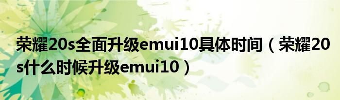 荣耀20s全面升级emui10具体时间(荣耀20s什么时候升级emui10)