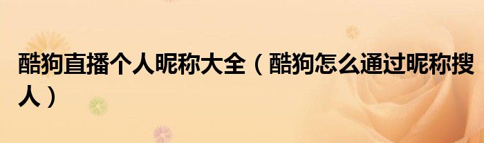 导读 大家好,小跳为你解答以上问题。酷狗直播个人昵称大全,酷狗怎么通过昵称搜人这个问题很多人还不知道,现在让我们一起来看看吧!
