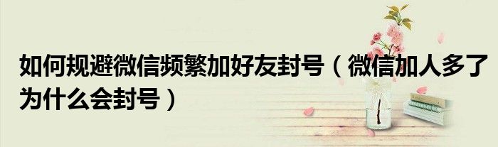 导读 大家好,小跳为你解答以上问题。如何规避微信频繁加好友封号,微信加人多了为什么会封号这个问题很多人还不知道,现在让我们一起来看看吧!