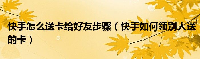 导读 大家好,小跳为你解答以上问题。快手怎么送卡给好友步骤,快手如何领别人送的卡这个问题很多人还不知道,现在让我们一起来看看吧!