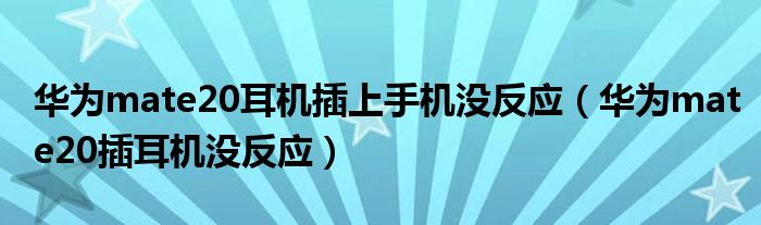 华为mate20耳机插上手机没反应(华为mate20插耳机没反应)