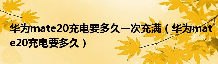 华为mate20充电要多久一次充满(华为mate20充电要多久)