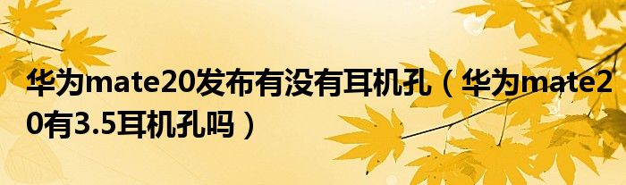 导读 大家好,小跳为你解答以上问题。华为mate20发布有没有耳机孔,华为mate20有3 5耳机孔吗这个问题很多人还不知道,现在让我们一起来看看吧!