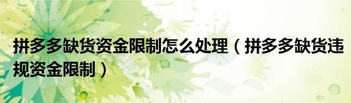 拼多多缺货资金限制怎么处理(拼多多缺货违规资金限制)