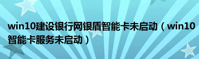 导读 大家好,小跳为你解答以上问题。win10建设银行网银盾智能卡未启动,win10智能卡服务未启动这个问题很多人还不知道,现在让我们一起来看看吧