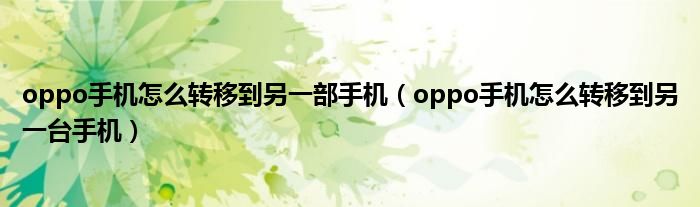 oppo手机怎么转移到另一部手机(oppo手机怎么转移到另一台手机)