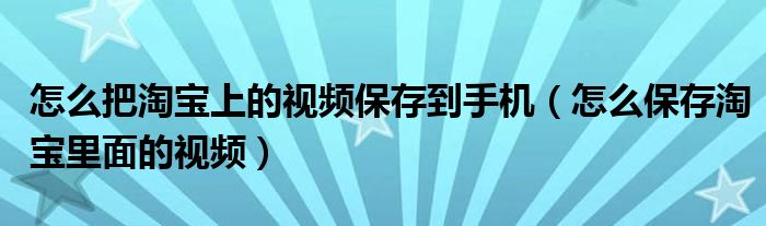 怎么把淘宝上的视频保存到手机(怎么保存淘宝里面的视频)