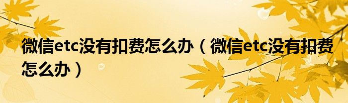 微信etc没有扣费怎么办(微信etc没有扣费怎么办)