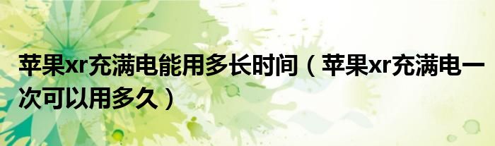 苹果xr充满电能用多长时间(苹果xr充满电一次可以用多久)