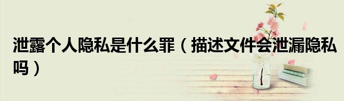 导读 大家好,小跳为你解答以上问题。泄露个人隐私是什么罪,描述文件会泄漏隐私吗这个问题很多人还不知道,现在让我们一起来看看吧!