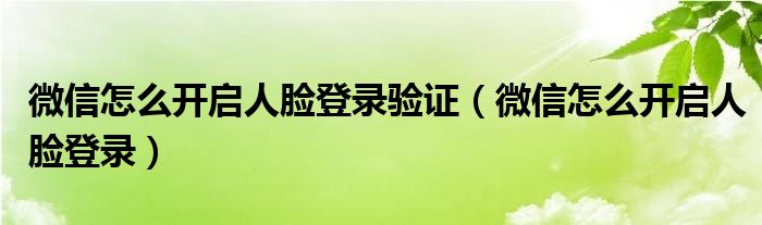 微信怎么开启人脸登录验证(微信怎么开启人脸登录)