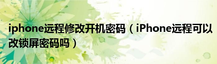 导读 大家好,小跳为你解答以上问题。iphone远程修改开机密码,iPhone远程可以改锁屏密码吗这个问题很多人还不知道,现在让我们一起来看看吧!